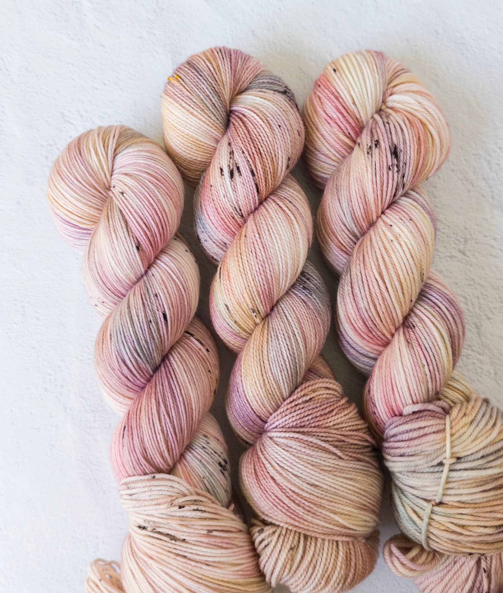 Due to the nature of hand-dyed yarn, there may be slight differences between skeins of the same colorway. For large projects, alternate skeins for best results, and be sure to buy all the yarn you need for your project at one time.
