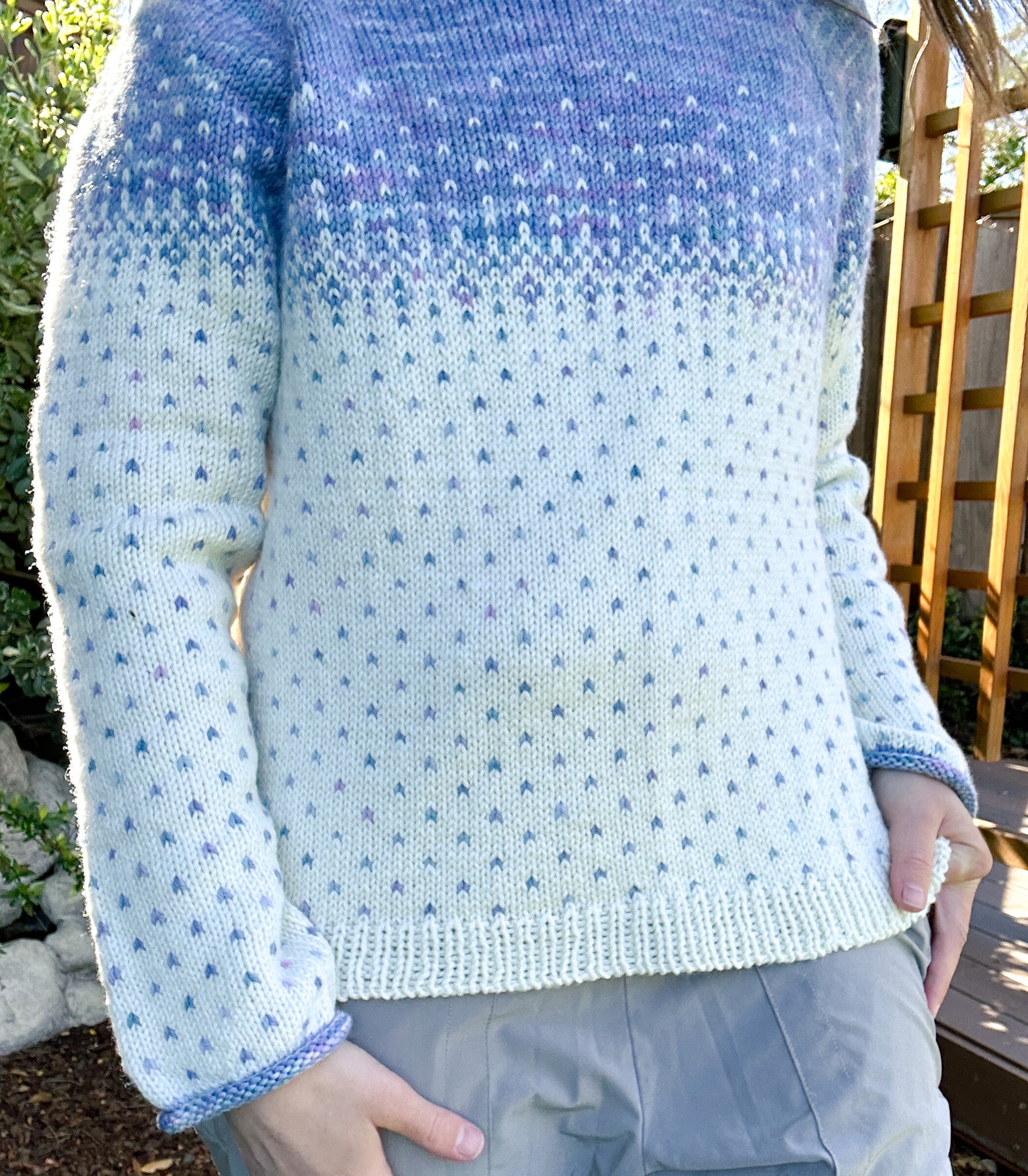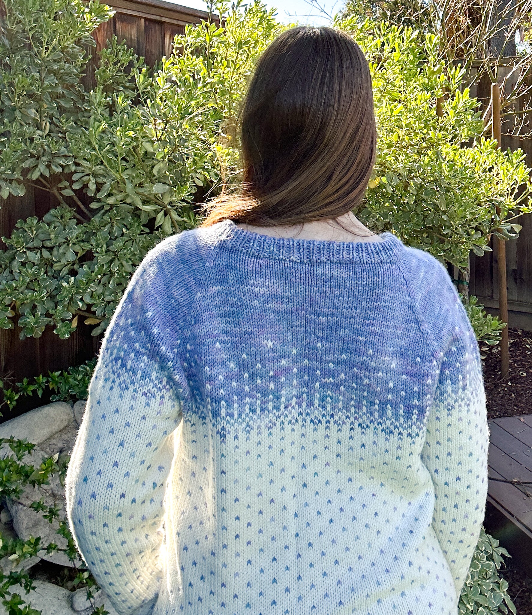 This sweater design is based on one of my most popular sock patterns, the Sprinkle Socks. This pattern includes two views - View A (blue sample) places the contrast color section at the top, and View B (brown sample) places the contrast color at the bottom. Both versions have a seamless, top-down construction, with compound raglan shaping for a good fit. You can choose to make whichever view is your favorite, or make both!
