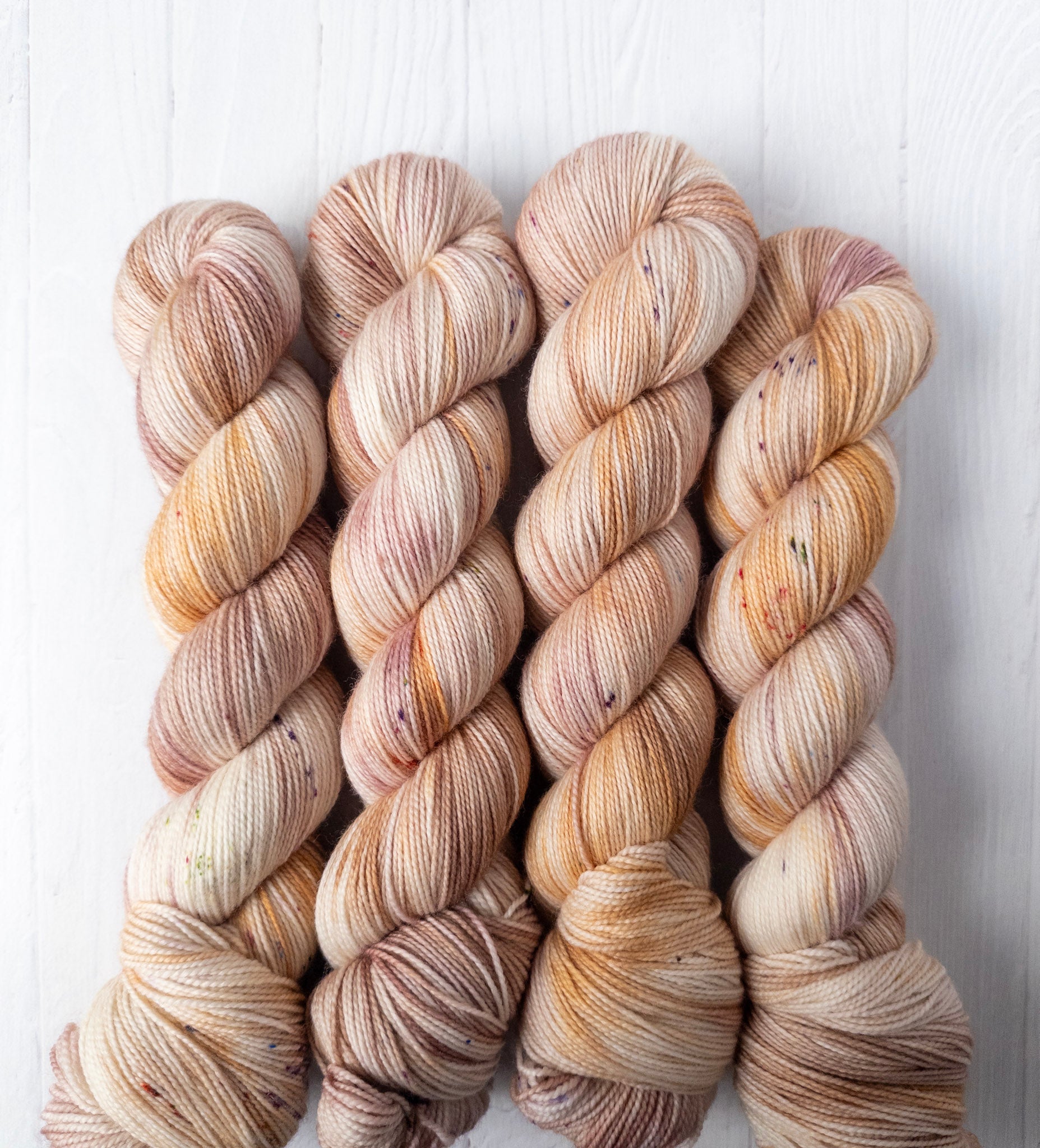 Yarn is photographed in natural lighting, but please note colors can vary across monitors and devices. Yarn is stored in a pet-free and smoke-free home. Multiple skeins may be shown to show the variation across skeins - the listing is for one skein or set. Due to the nature of hand-dyed yarn, there may be slight differences between skeins of the same colorway. For large projects, alternate skeins for best results, and be sure to buy all the yarn you need for your project at one time.