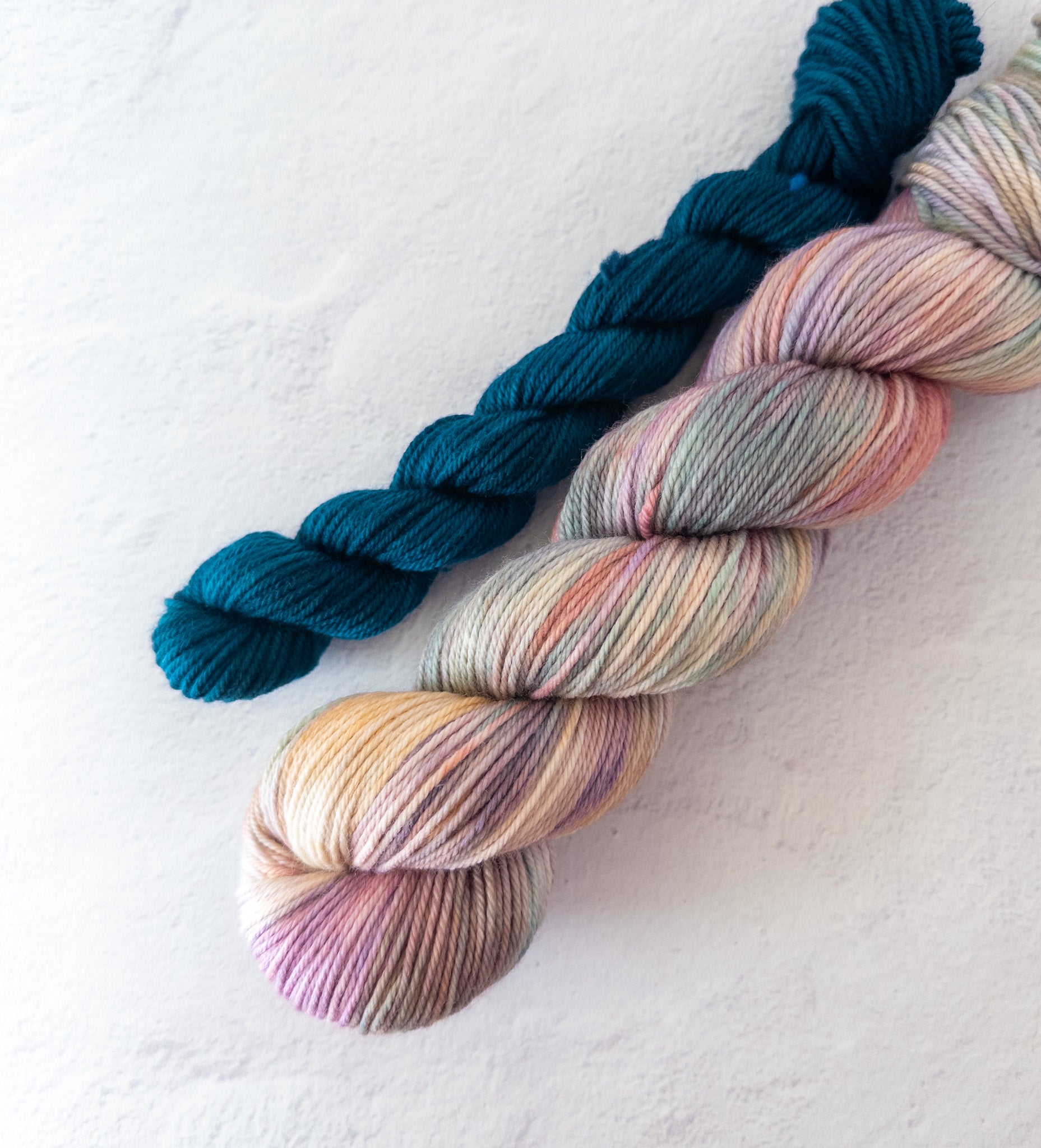Sock sets come with (1) 100g main skein of "The Sixth Station" and (1) 20g mini of "Kohaku River"